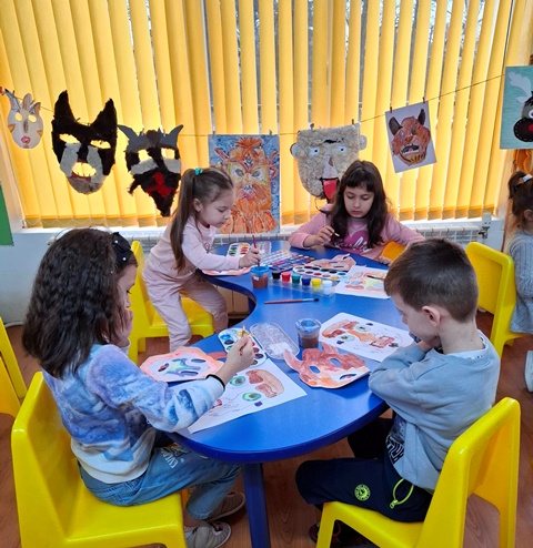k maski 2Провокирани от наученото малките художници с много въображение, старание и творчески дух нарисуваха кукерски маски - весели, цветни и понякога леко страховити.