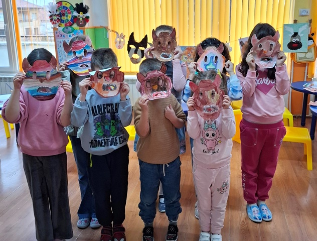 k maski 1В първата седмица на месец февруари 2026г., вдъхновени от предстоящия национален маскараден фестивал "Джамала" - Кюстендил 2026, децата от група "Врабче" се запознаха с традициите на българските обичаи и маскарадни игри.