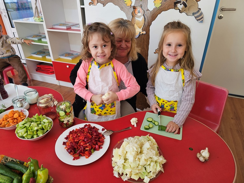 В началото на месец октомври 2025 г. децата от група "Зайче" поканиха бабата на Йоанна, за да направят свои собствени консерви от есенни зеленчуци.
