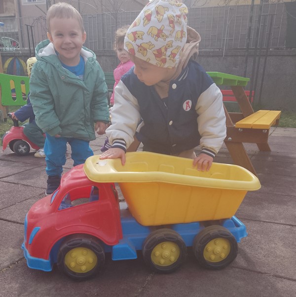 Децата от група "Калинка" се забавляваха на площадката в детската градина с различни играчки и весели игри.