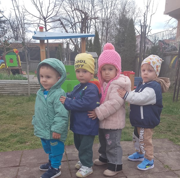 Пролетта пристигна и на двора на детската градина е красиво и приятно - топло слънчице грее, а цветенцата се разцъфтяха.