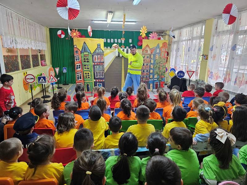 Детски образователен спектакъл на тема:"Движи се безопасно" изнесоха театър "Зазу". Постановката представи по забавен начин правилата, които всички участници в движението трябва да спазват.