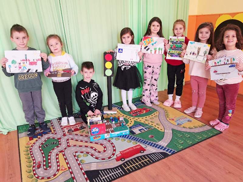 Всички групи се включиха в конкурс на тема: "Пешеходци и автомобили" представящи правилни и неправилни ситуации по пътя с изработване на рисунки и апликации в семейна среда.