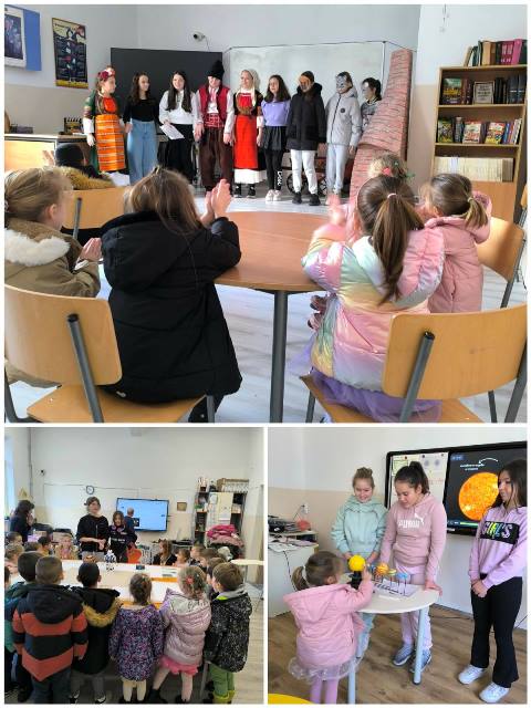 Голямо вълнение и възхита предизвика срещата с робота Минчо, който може всичко, представен от кака Макси и кака Хоуп. В кабинетът по природни науки чудният разказ за Слънчевата система, на момичетата от 6-ти клас, повиши мотивацията на "еделвайсчетата" да научават още нови неща. Интерактивния под с риби и медузи в морето предложи на малчуганите лесни и интуитивни игри, които се превърнаха в истинска забава. Като истински театрални артисти бяха шестокласниците, представяйки една от любимите приказки - "Дядо вади ряпа". Вики от ВГ "Звънче" поздрави всички с българска народна песен.