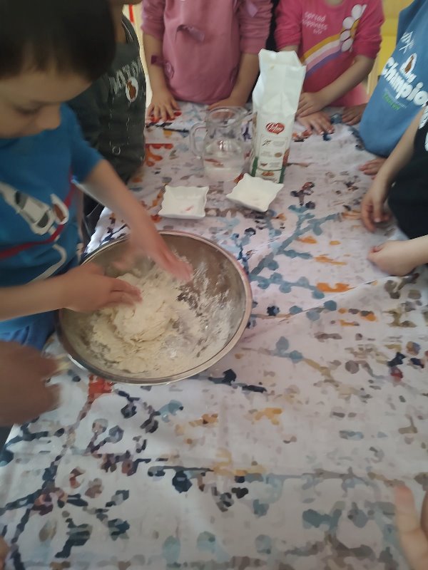 pitkata 2Основната цел на ситуацията беше децата да се запознаят със съдържанието на приказката "Дядовата питка"от Трайко Симеонов.