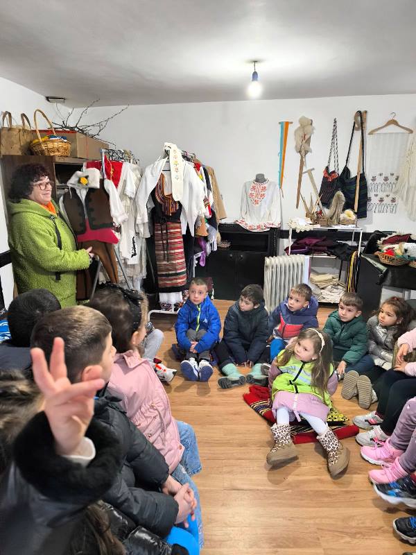 На 24 ноември 2025 г., майсторите умело демонстрираха своето изкуство пред децата от група „Врабче“ и група „Звънче“. Така се предават на следващите поколения магията на старите занаяти – кожарство, пчеларство, обущарство, обредност. С трепет и вълнение малчуганите изработиха ангелчета от кожа, с помощта на Камелия Янева, която прави и стъклопис и декопаж. Занаятчия Катя Георгиева по интересен начин разказа за „децата на слънцето“ – работливите пчелички и техните продукти. За обредността, обичаите, кукерските маски и кюстендилските носии ни разказа Елена Славова. Майстори Димитър и Емилия Димитрови стъпка по стъпка показаха работилницата за обущарско изкуство. Децата видяха машина от 18 век и емблематичните български цървули.