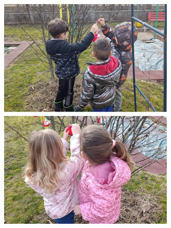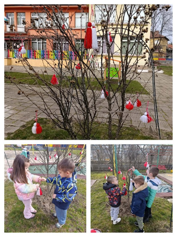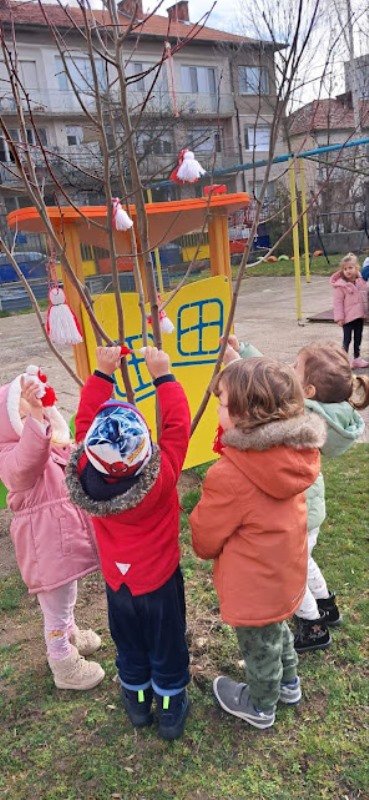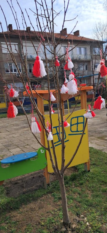 На 23 февруари 2026 година децата от групите „ Звънче“, „Катеричка“и „Мечо“ украсиха с много желание и усмивки своите мартенски дървета в двора на детската градина. С ръчно изработени мартеници от деца и учители дърветата засияха в нова пролетна премяна.