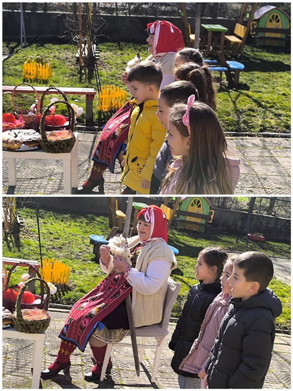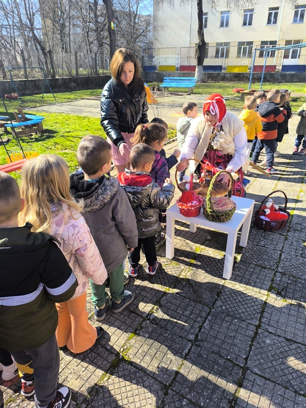 Тя запозна малките възпитаници с традициите, свързани с празника и от нея те научиха повече за символиката на бяло-червената мартеница. Докато Баба Марта си почиваше, децата пяха и рецитираха тематични