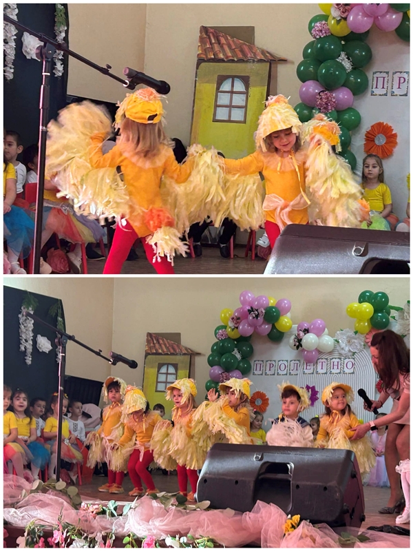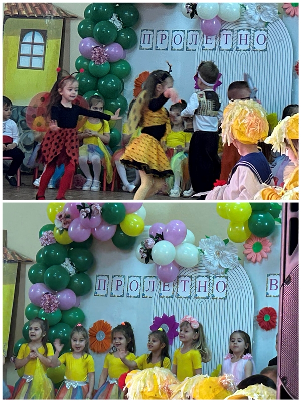С много артистичност децата пресъздадоха пробуждането на природата – появата на първите цветя, топлото слънце, пъстрите пеперуди и радостното настроение, което носи пролетта. Сцената се изпълни с цветове, музика и детски смях, а гостите аплодираха с възхищение малките изпълнители.