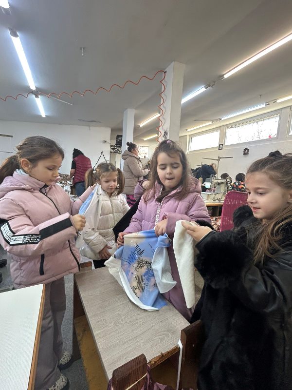 На 15 януари 2026 годна децата от група „Звънче“ имаха възможността да посетят шивашки цех, където се запознаха отблизо със света на текстила и ръчния труд. По време на посещението те научиха как се изработват дрехи и аксесоари, както и какви материали се използват в този процес.