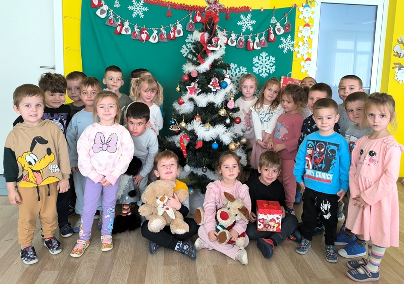 На 3 декември 2025 година в група "Катеричка" настъпи истинска празнична магия. Децата с голямо вълнение се събраха около красивата зелена елха, за да я украсят. Малките ръчички внимателно подреждаха шарени топки, блестящи звезди и коледни фигурки, направени по време на заниманията. Всяко дете избра своето специално място, на което да закачи украса, а смехът и радостните възгласи изпълниха занималнята. Накрая всички заедно поставиха голямата звезда на върха на елхата и я запалиха със светлините.