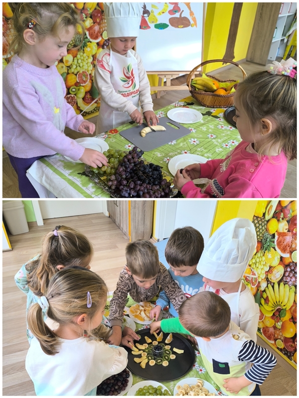 В атмосфера на любов и топлина, предоставяща възможност на всяко дете да развива и усъвършенства своите кулинарни умения и таланти ,малките кулинари развихриха своето въображение и създадоха невероятни плодови изкушения. Неразривното сътрудничество учител- дете е в основата на сигурната, безопасна, но и подкрепяща креативността на децата среда.