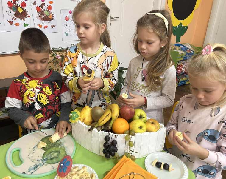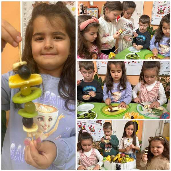 През октомври 2025 година децата от групи "Катеричка“, "Мечо" и "Звънче" си направиха здравословни плодови шишчета и плодови салати.