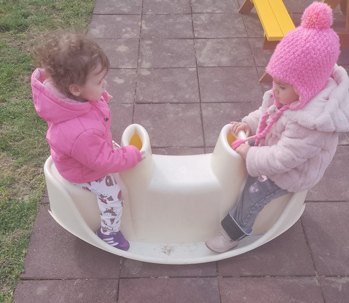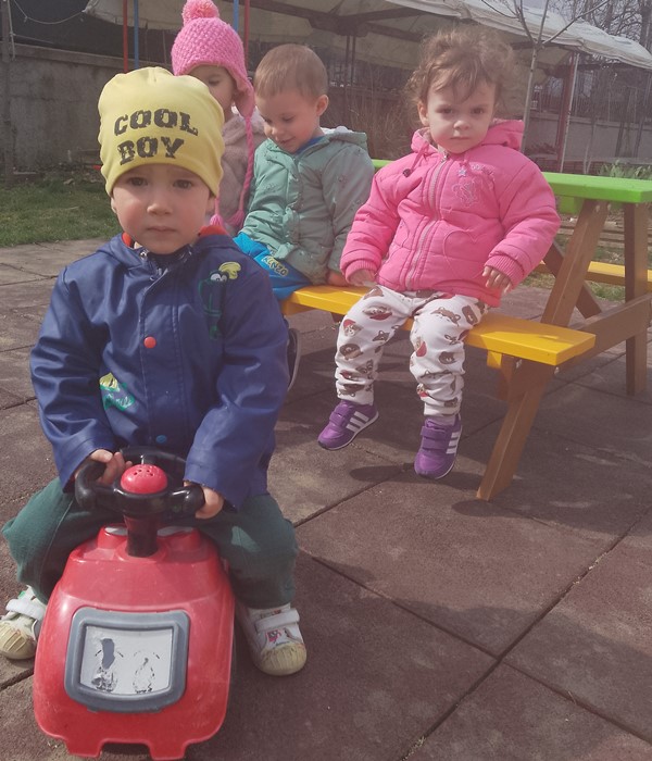 Пролетта пристигна и на двора на детската градина е красиво и приятно - топло слънчице грее, а цветенцата се разцъфтяха.