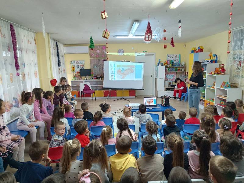 В края на м. ноември 2025 в ДГ" Еделвайс" бе проведена здравна беседа на тема" Кой се грижи за нашето здраве? Как се разболяваме?" от Камелия Стефанова - специалист здравни грижи в ДГ и училища към Община Кюстендил.