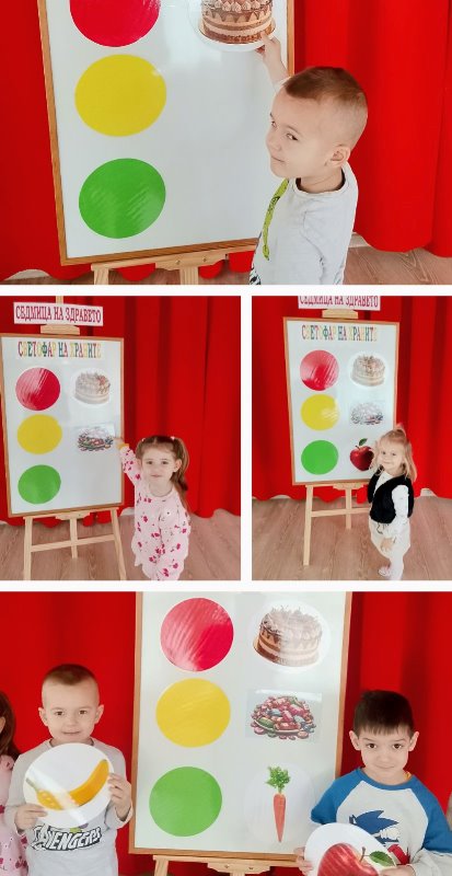 В първия ден от седмицата децата участваха в играта „Светофар на храните“, чрез която по достъпен и забавен начин се запознаха с полезните и вредни храни и тяхното значение за здравето.