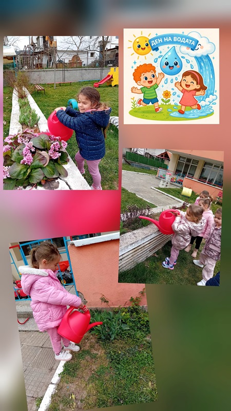 На 18 март 2026г.децата от група „Ежко“отбелязаха "Денят на водата",като станаха истински градинари! С лейки в ръце те поливаха цветята и дръвчетата в двора и се забавляваха от сърце.