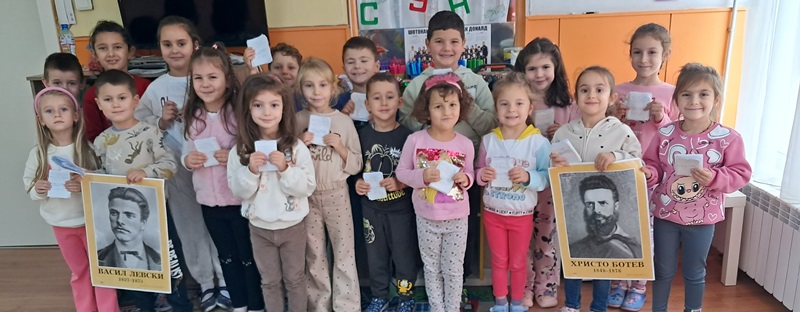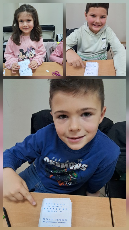 В навечерието на 1 ноември – Денят на народните будители, на 28 октомври 2025 г., децата от група „Врабче“ посетиха Регионален исторически музей Кюстендил. С голямо желание те изработиха мини „Рибен буквар“, научиха повече за Петър Берон и за всички, посветили живота си на българската духовност, език и култура, вдъхнали национална гордост на нашия народ. „Врабчетата“ знаят, че 1 ноември е ден на възхвала и почит, празник, ознаменуващ делото на българските просветители, книжовници и революционери, осветил пътя на възраждащия се национален дух и стремеж към свобода, познание, наука и култура. Децата рецитираха с плам стихотворение за будителите, припомниха си и за днешните будители – хората, които посяват зрънцето на любовта към книгите, пазят и предават българския дух и традиции. Направения с любов „Рибен буквар“ се превърна в онзи мост, по който децата ще пренесат в бъдещето знания и ценности, наследени от нашите предци.