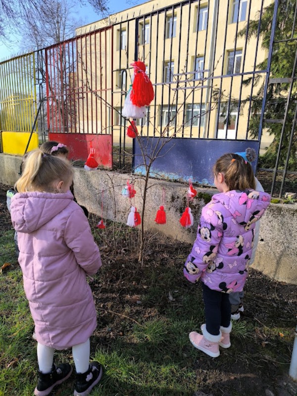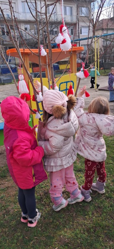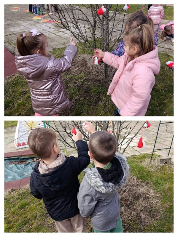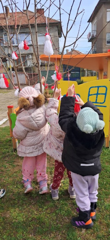 На 23 февруари 2026 година децата от групите „ Звънче“, „Катеричка“и „Мечо“ украсиха с много желание и усмивки своите мартенски дървета в двора на детската градина. С ръчно изработени мартеници от деца и учители дърветата засияха в нова пролетна премяна.