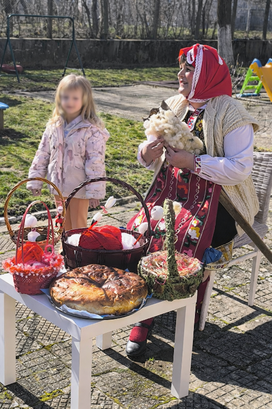 Тя запозна малките възпитаници с традициите, свързани с празника и от нея те научиха повече за символиката на бяло-червената мартеница. Докато Баба Марта си почиваше, децата пяха и рецитираха тематични