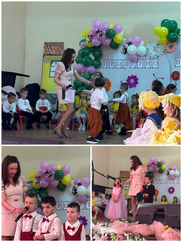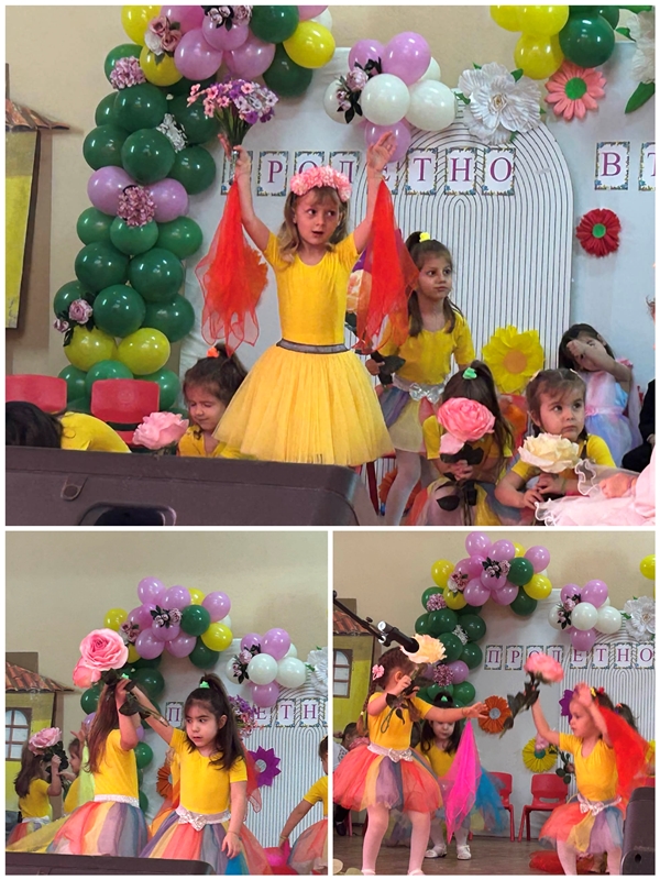С много артистичност децата пресъздадоха пробуждането на природата – появата на първите цветя, топлото слънце, пъстрите пеперуди и радостното настроение, което носи пролетта. Сцената се изпълни с цветове, музика и детски смях, а гостите аплодираха с възхищение малките изпълнители.