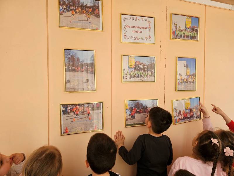 Децата от група "Зайче" с огромно вълнение разгледаха новите експозиции и си направиха снимки, след като намериха своите места в изложбата.