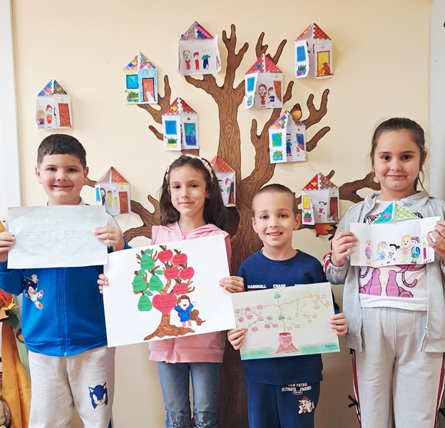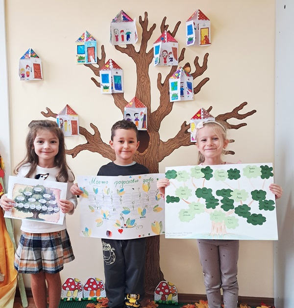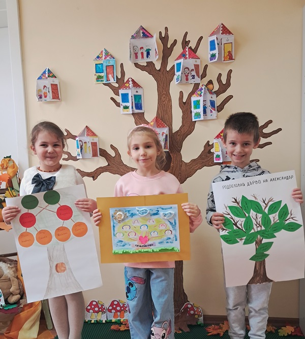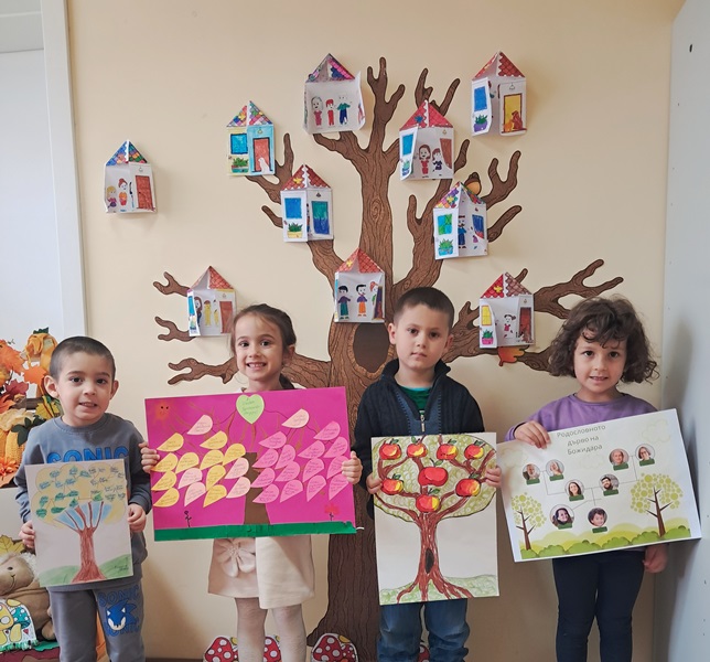 В навечерието на един от най-светлите български празници "Въведение Богородично" деца и родители изработиха в домашна среда своето родословно дърво. Родителите силно въздействат върху развитието на детската личност със своите знания, система от ценности и модели на поведение. Семейството е една малка лаборатория, в която се развиват основните ни нагласи и представи за света. Ето защо е толкова важно да помагаме на децата заедно да развиват пълноценни нагласи и модели, които да им послужат в ролята на възрастни, родители или партньори.