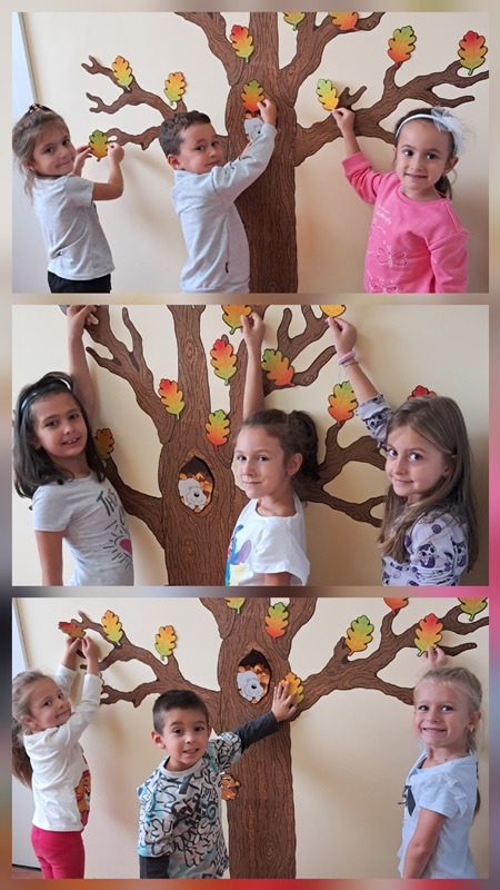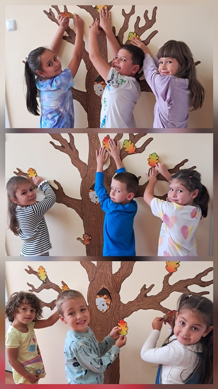 Децата от група „Врабче“ с ентусиазъм и много настроение премениха своето есенно дърво, изработиха есенни листа, с които украсиха своята занималня. Последният ден на септември 2025 година бе изпълнен с веселие, творчество и много усмивки.