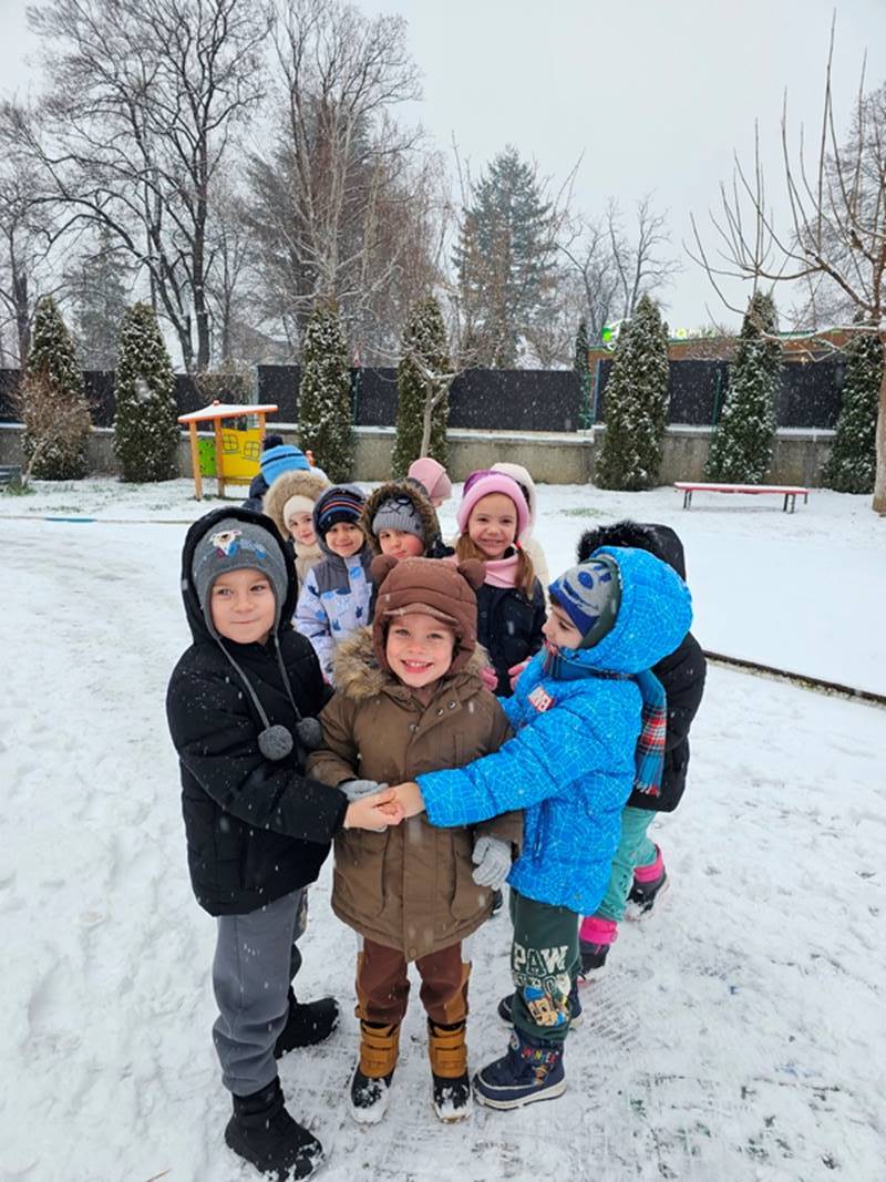 Децата от група "Зайче" се забавляваха днес (21.01.2026 г.) в снега, въодушевени от падащия сняг, правиха снежни топки замеряха се с тях и веселбата беше в своя вихър. Бузките на малките зайчета се зачервиха и на детските личица грейнаха щастливи усмивки.