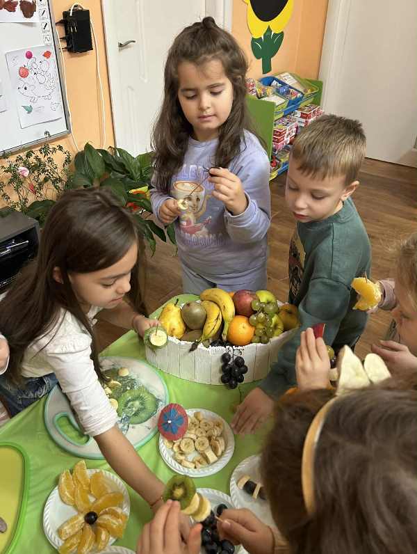 През октомври 2025 година децата от групи "Катеричка“, "Мечо" и "Звънче" си направиха здравословни плодови шишчета и плодови салати.