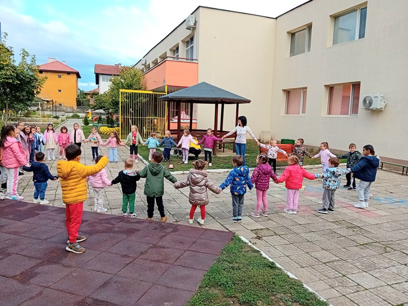 Денят на децата в ДГ "Еделвайс" започва с утринна гимнастика на открито. Всяка сутрин децата изпълняват комплекс от упражнения за развиване на всички мускулни групи и се зареждат с положителна енергия и тонус за целия ден.