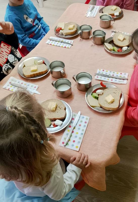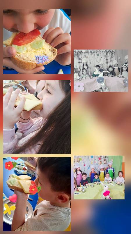 Децата от всички групи ежемесечно приготвят здравословни сандвичи като прилагат усвоените умения за изработване, подреждане и декорация на сандвичи по време на сутрешната закуска.