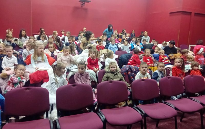 Тя се състоя в Камерна зала на Общински драматичен театър, която бе украсена празнично с много играчки,светлини и голяма елха. Притаили дъх децата изгледаха пиесата.