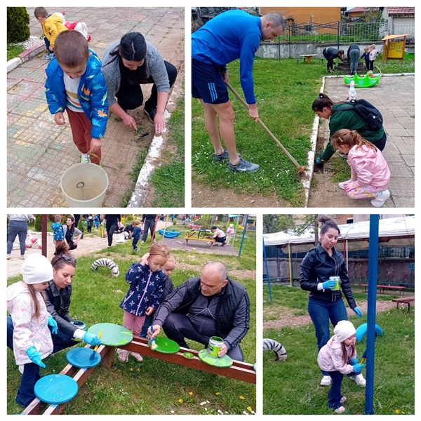 Екипът на група „Ежко“ изказва своята благодарност към родителите за активното им участие в почистването и освежаването на дворното пространство. На децата пожелаваме много весели игри на обновените площадки.
