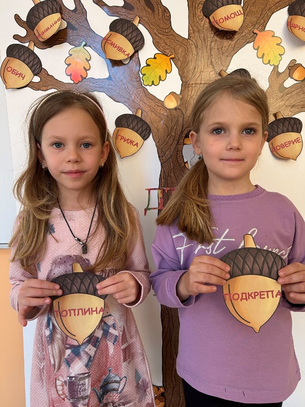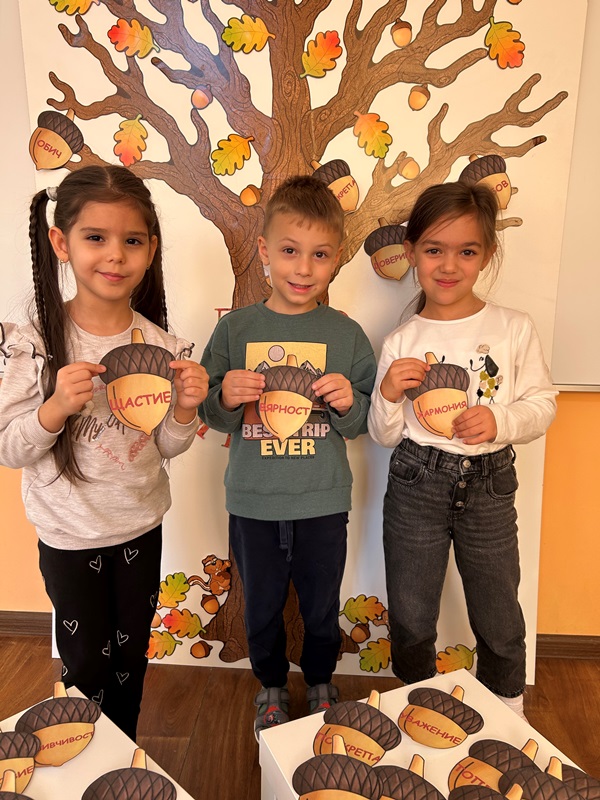 В средата на месец ноември 2025 година малките творци изработиха свое „Дърво на приятелството“, използвайки жълъди с различни послания, като символ на сплотеност и взаимна подкрепа.