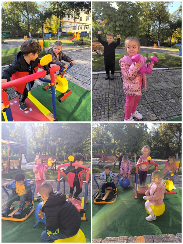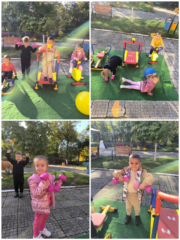 През топлите есенни дни на октомври 2025 година, посредством привлекателна спортна атмосфера в двора на детската градина - насърчаваме двигателната активност на децата. Използването на мобилни детски фитнес уреди на открито изгражда позитивна нагласа към спорта и здравословния начин на живот.