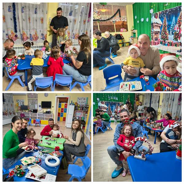 Работилницата се превърна в истинска феерия от цветове, блясък и празнични емоции. Децата с гордост представиха своите изделия, а най-ценният резултат беше радостта в очите им и споделеното време с любимите хора.