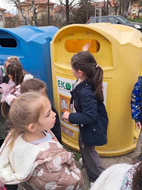 Говорихме за разделното събиране на отпадъци – не като задължение, а като личен избор, който има значение и ние правим постоянно, не само днес. "Врабчетата" с желание демонстрираха как правилно се разделят различните видове опаковки и ги изхвърлиха в съответните контейнери. С интерес, активно се включиха в дискусията, споделяйки свои знания и наблюдения.